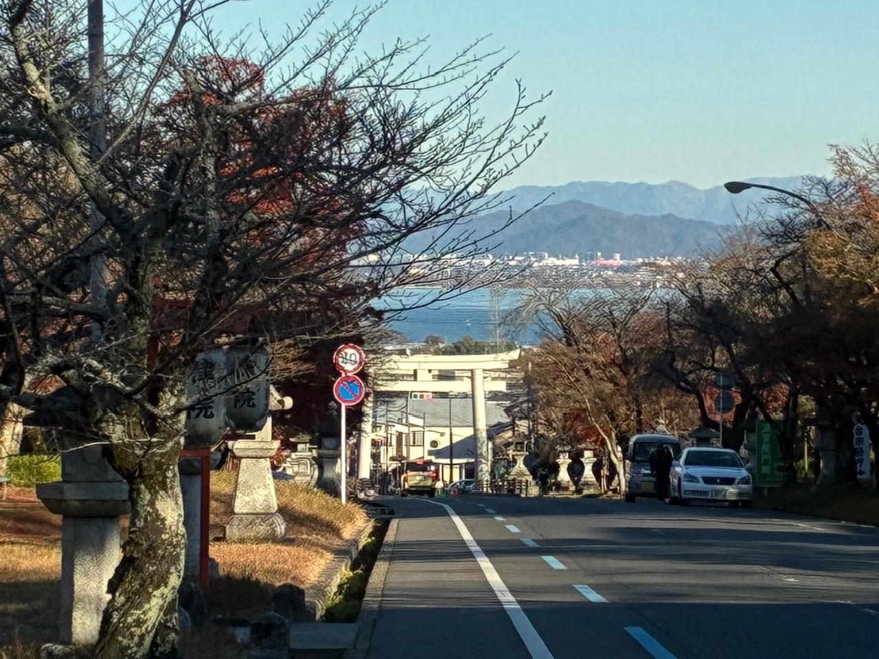 無事に目的地の坂本比叡山口駅に到着することができました。ここまで来たので、もう少し先のケーブル坂本駅まで行ってみることにしました。ゆるやかな坂道になっている石積み「穴太衆積み」の門前町を通り20分程歩くとケーブル坂本駅に到着します。歩いている途中に振り返ると、きれいな琵琶湖を見ることができました。